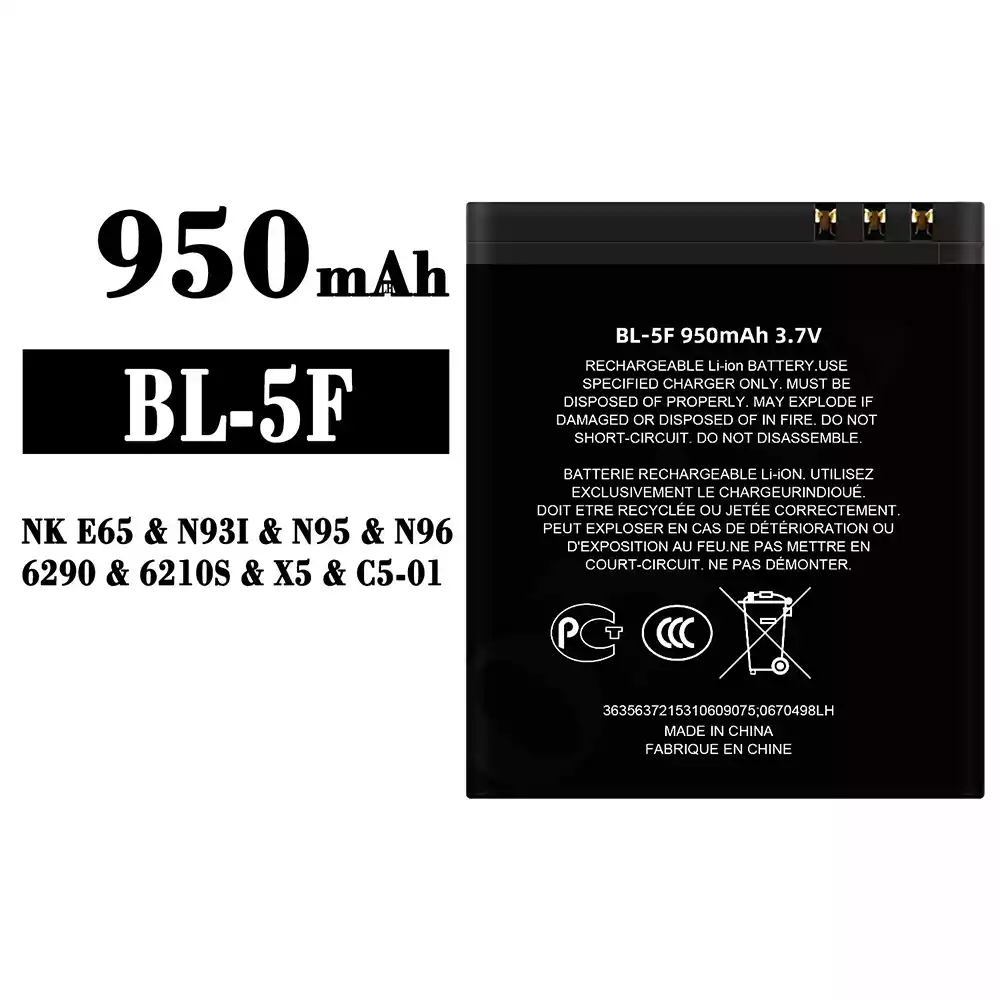 Accu BL-5F voor Nokia NK E65 / N93I / N95 / N96 / 6290 / 6210S / X5 / C5-01