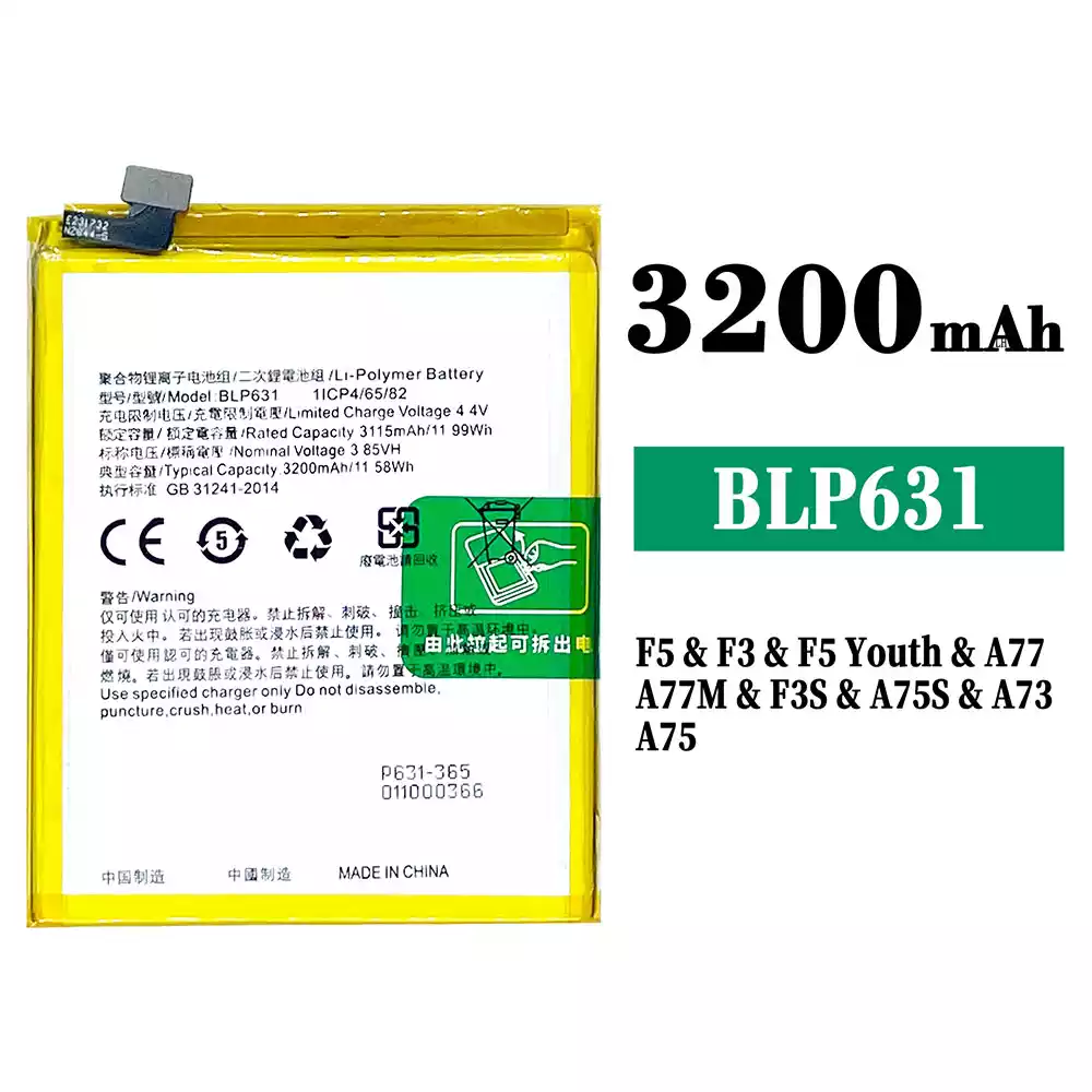 Accu BLP631 voor OPPO F5 / F5 Plus / CPH1723 / CPH1727 / CHP1723 / CHP1727 / F5 Youth / A73 /CPH1725 / F3 / CPH1609 / A77 / CPHl715 / A75