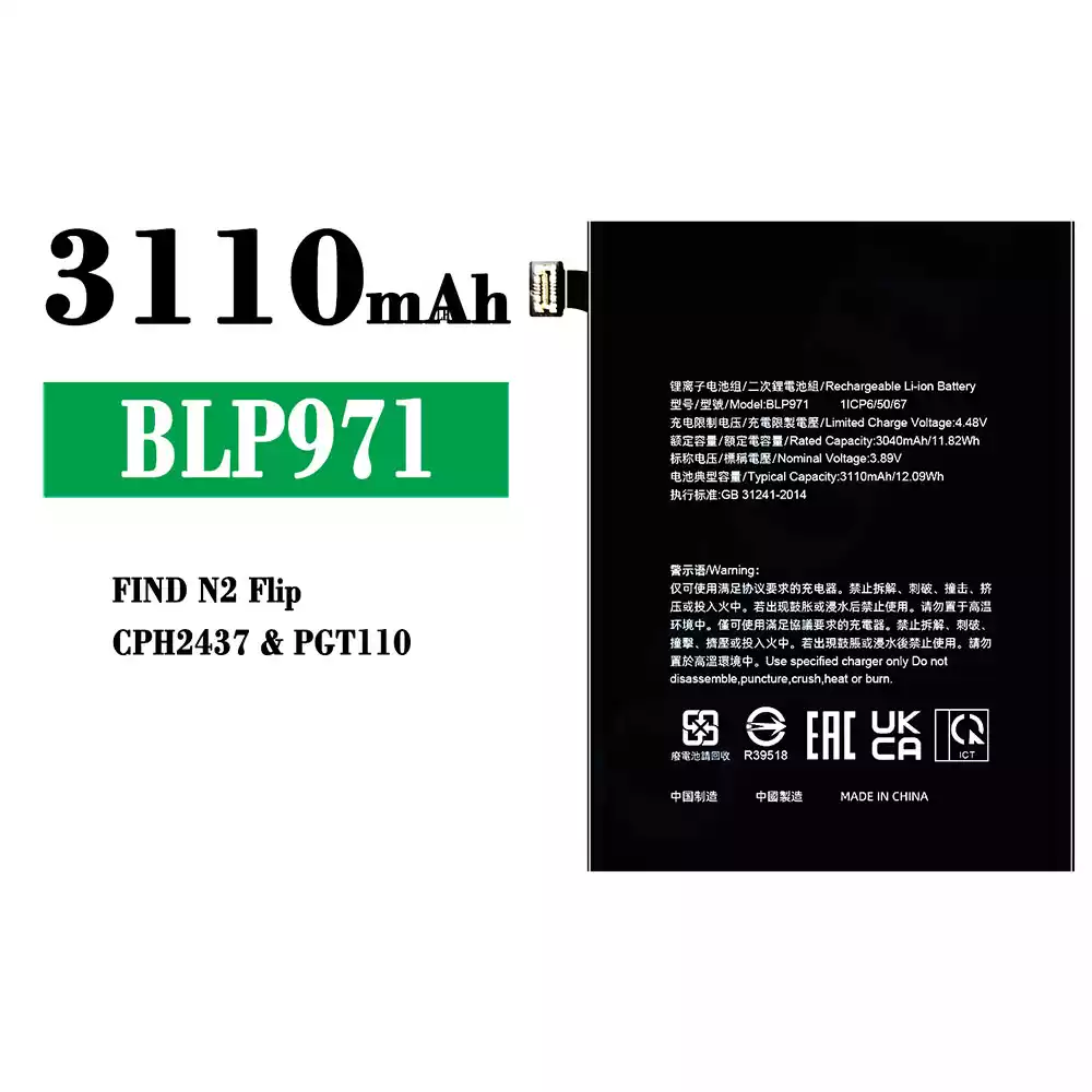 Accu BLP971 voor OPPO FIND N2 Flip/CPH2437/PGT110