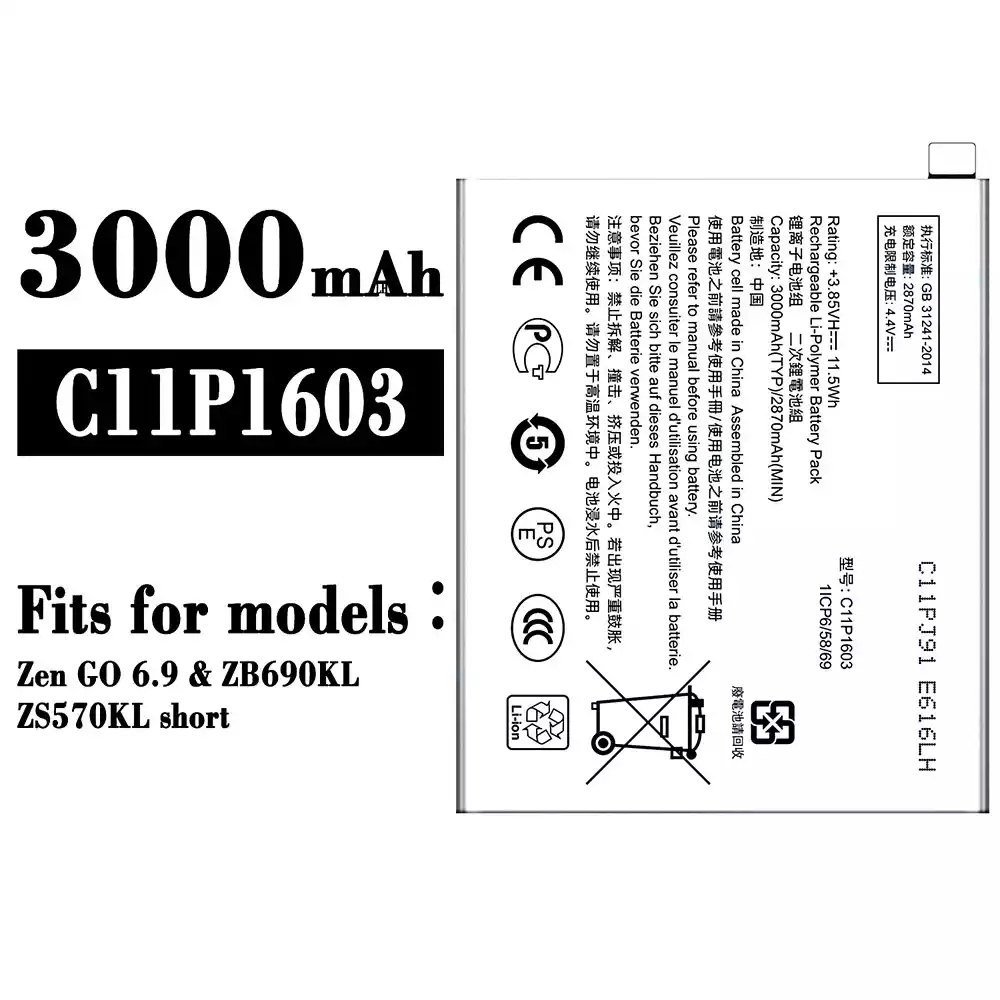 Accu C11P1603 voor Asus Zen GO 6.9 / ZB690KL / ZS570KL Short