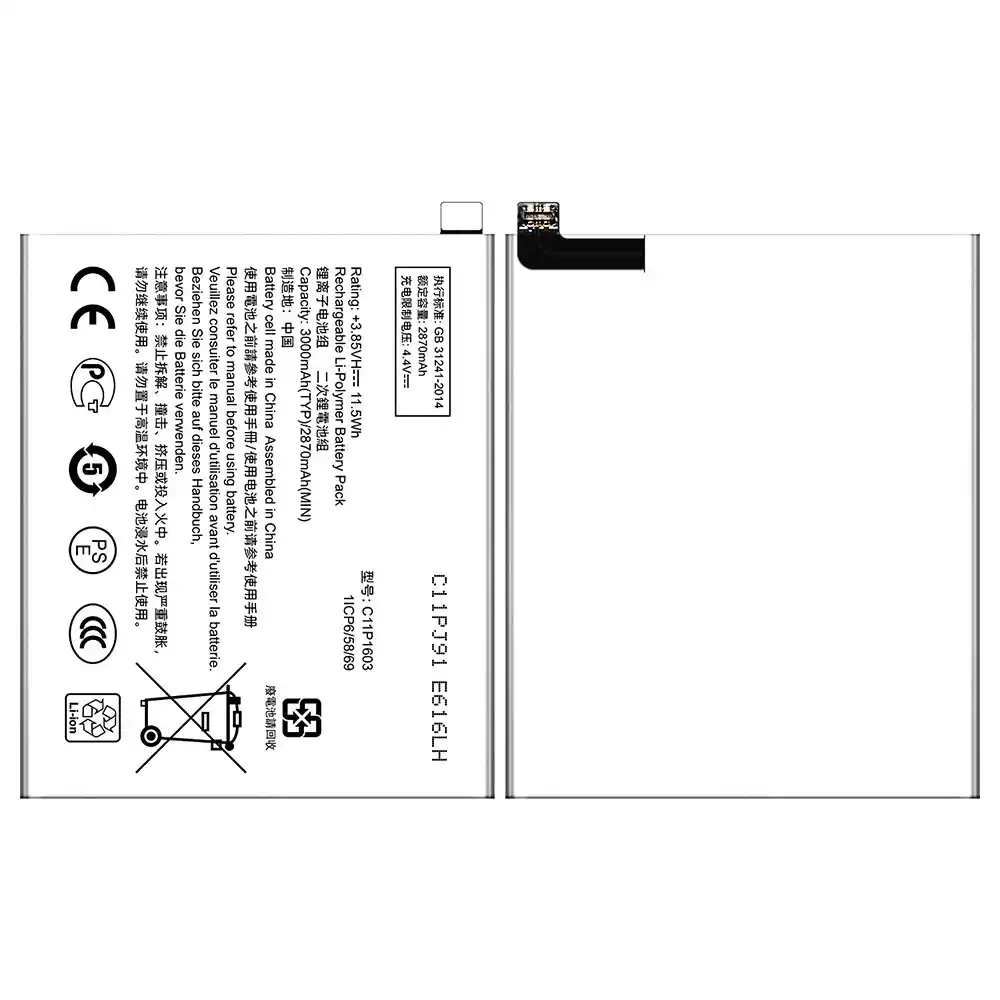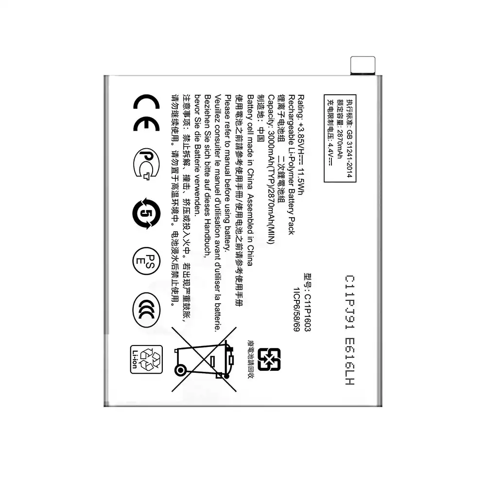 Capaciteit: 3000mAh (11.5Wh)