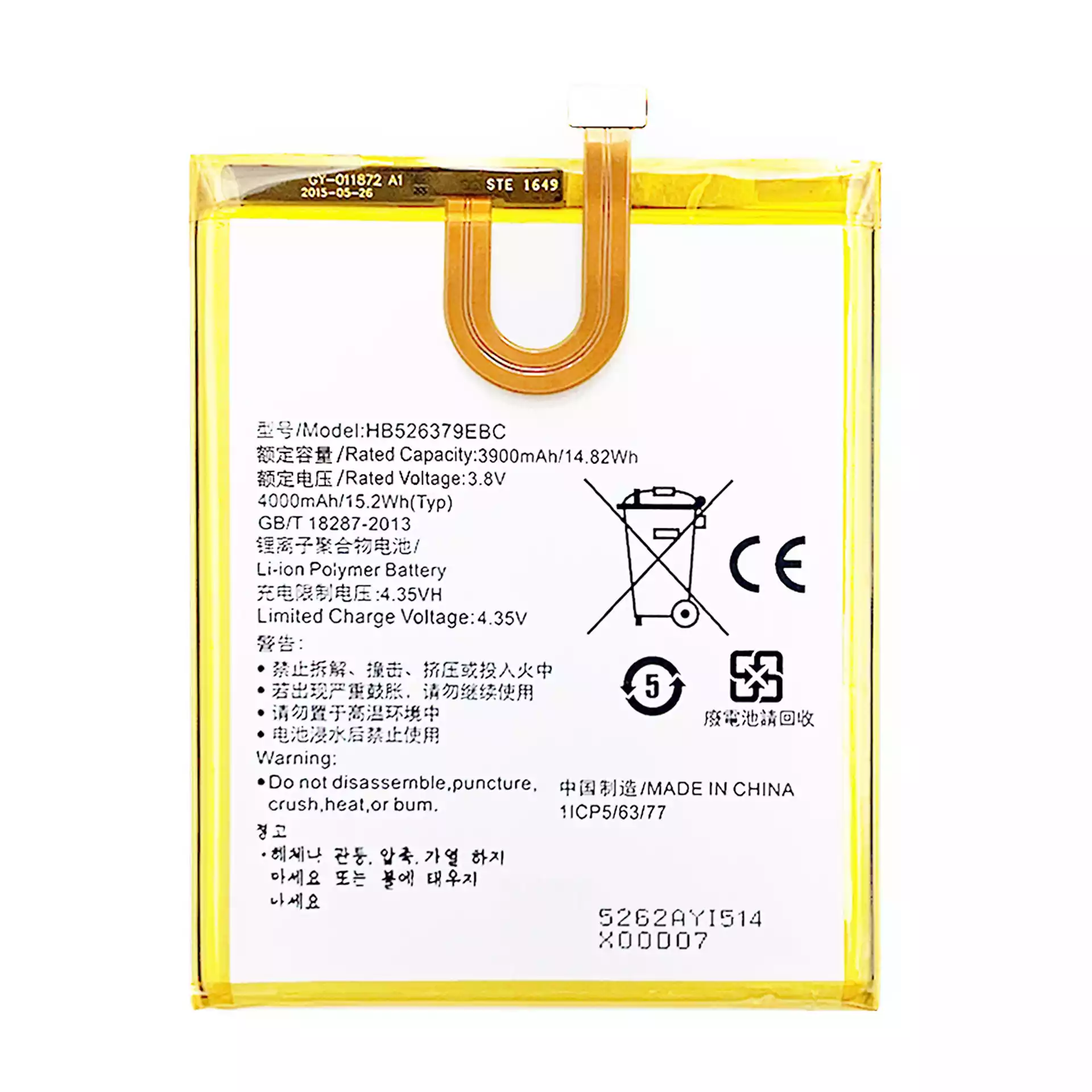 Accu HB526379EBC voor HUAWEI Y6 Pro / Y6 Pro 2015 / Honor Play 5X 2015 / Enjoy 5 2015 / Honor 4C Pro