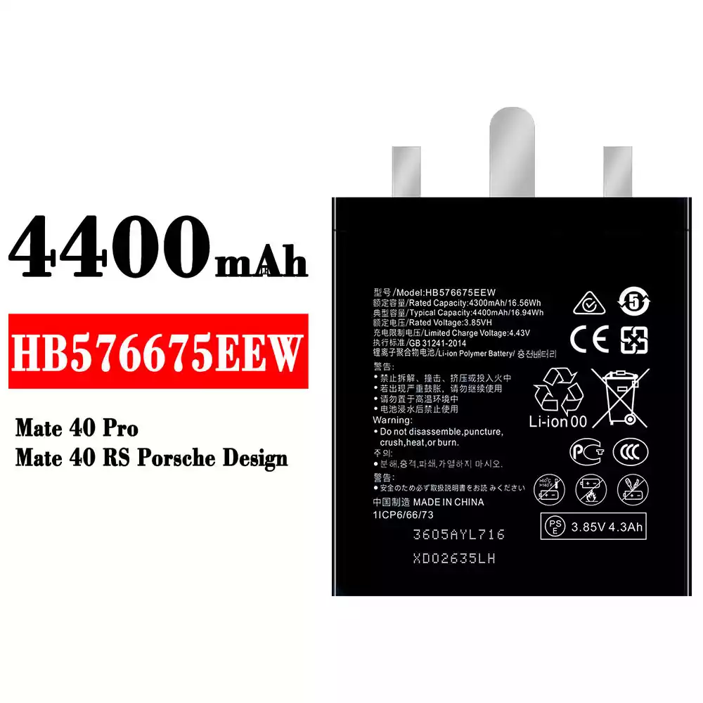 Accu HB576675EEW voor HUAWEI Mate 40 Pro / Mate 40 RS Porsche Design