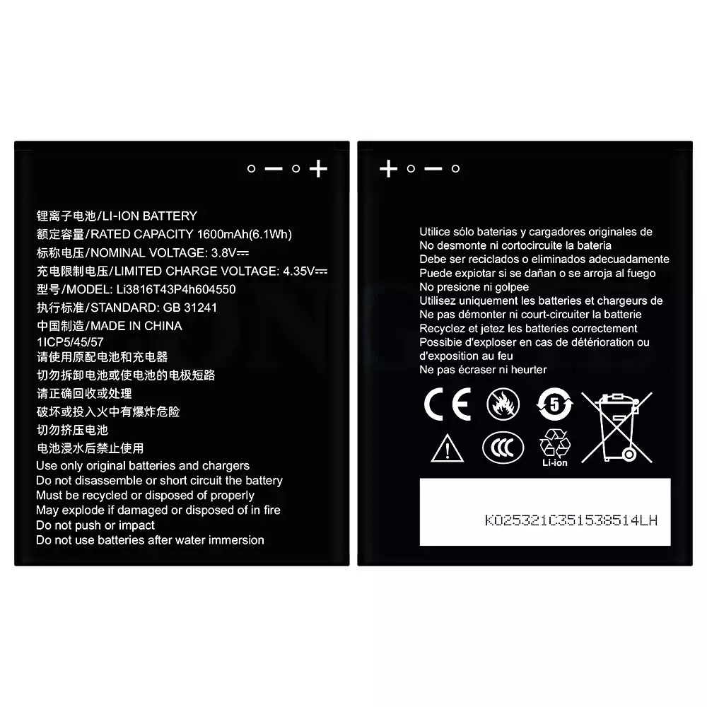 Accu Li3814T43P4h604550 voor ZTE Blade L130/Z2335CA/Grand MAX 4550