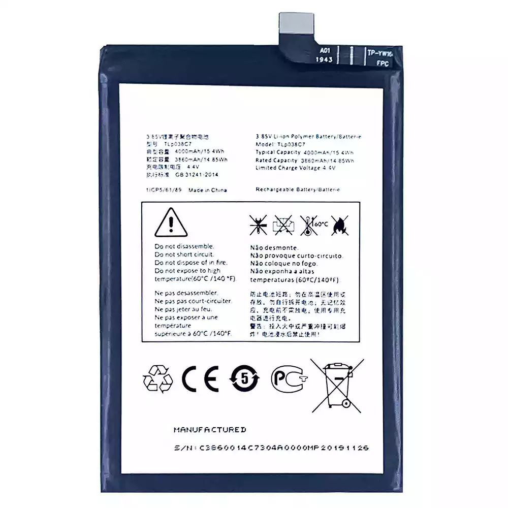 Accu TLP038C7 voor Alcatel 3X 2019/5048Y/5048A/5048Y_EEA/5048I/5048U_EEA/5V/5060D/5060A/5060J