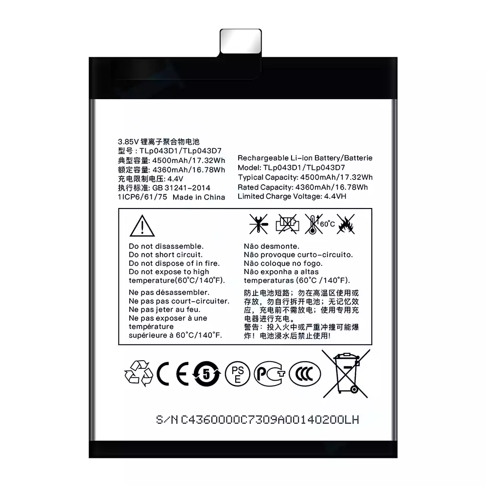 Accu TLP043D1/TLP043D7 voor Alcatel TCL 10 Plus/TCL 20 Plus/TCL 10 pro/TCL 20 pro